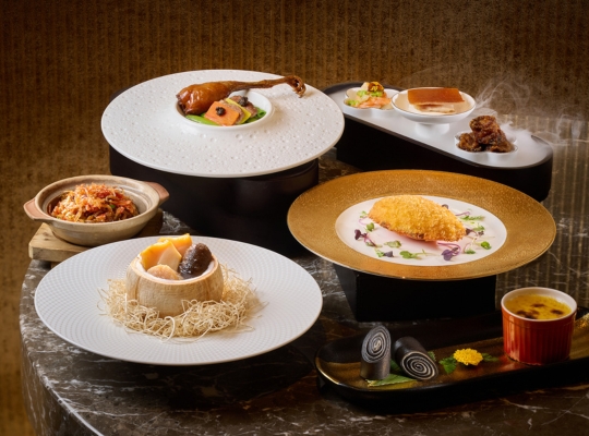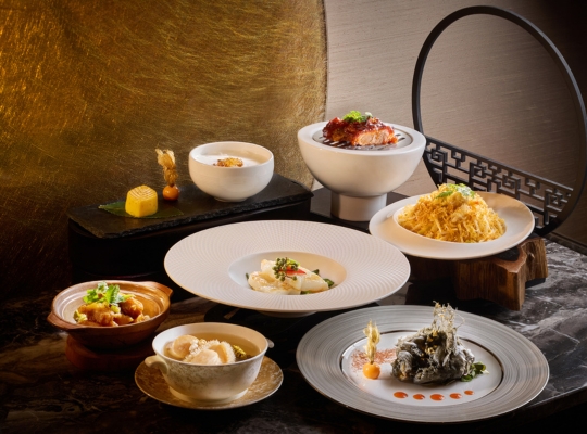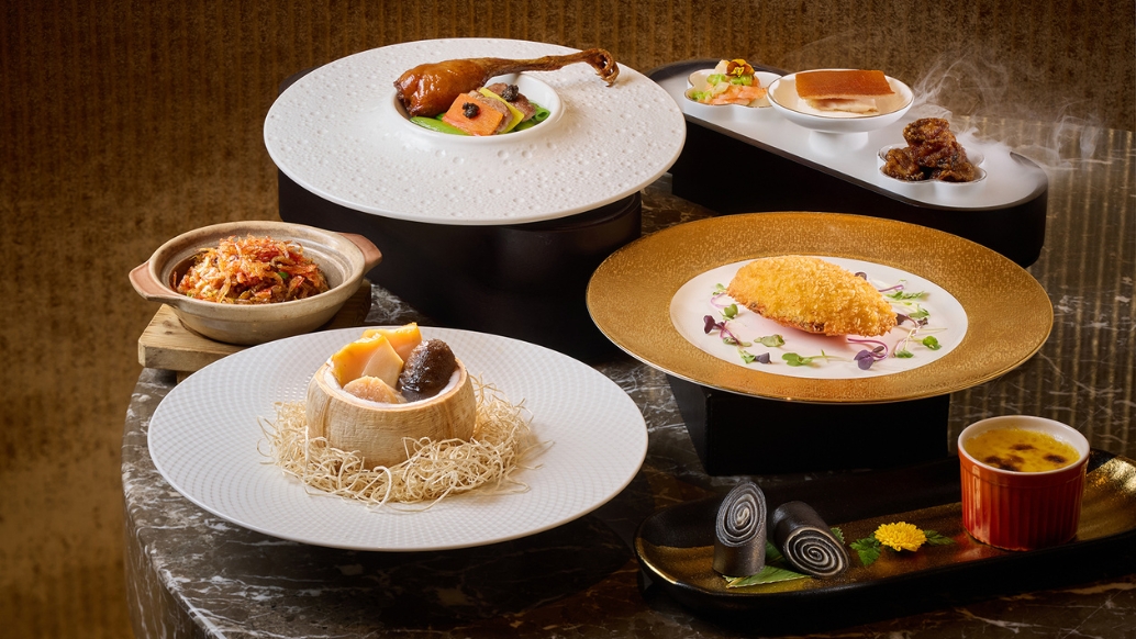 Prestige Tasting Menu pays homage to timeless Cantonese techniques through six elegant dishes, including the signature Jiangnan Crispy Pigeon Leg and Baked Alaskan Crab Shell stuffed with Crab Meat — each delicately composed to honour tradition while embracing refinement.