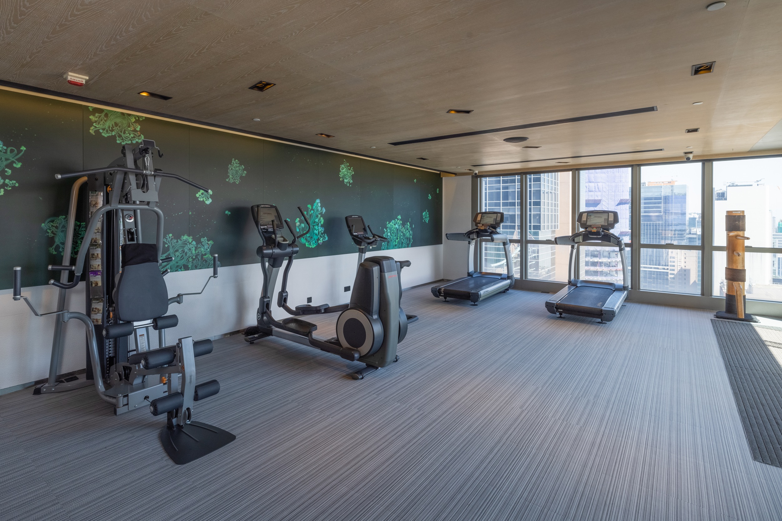 你可在设施完善的健身中心和休憩区,饱览城市绚烂景致。健身区设有有氧及负重健身器材,更特设咏春木桩和瑜伽垫,让你能体验各种运动。